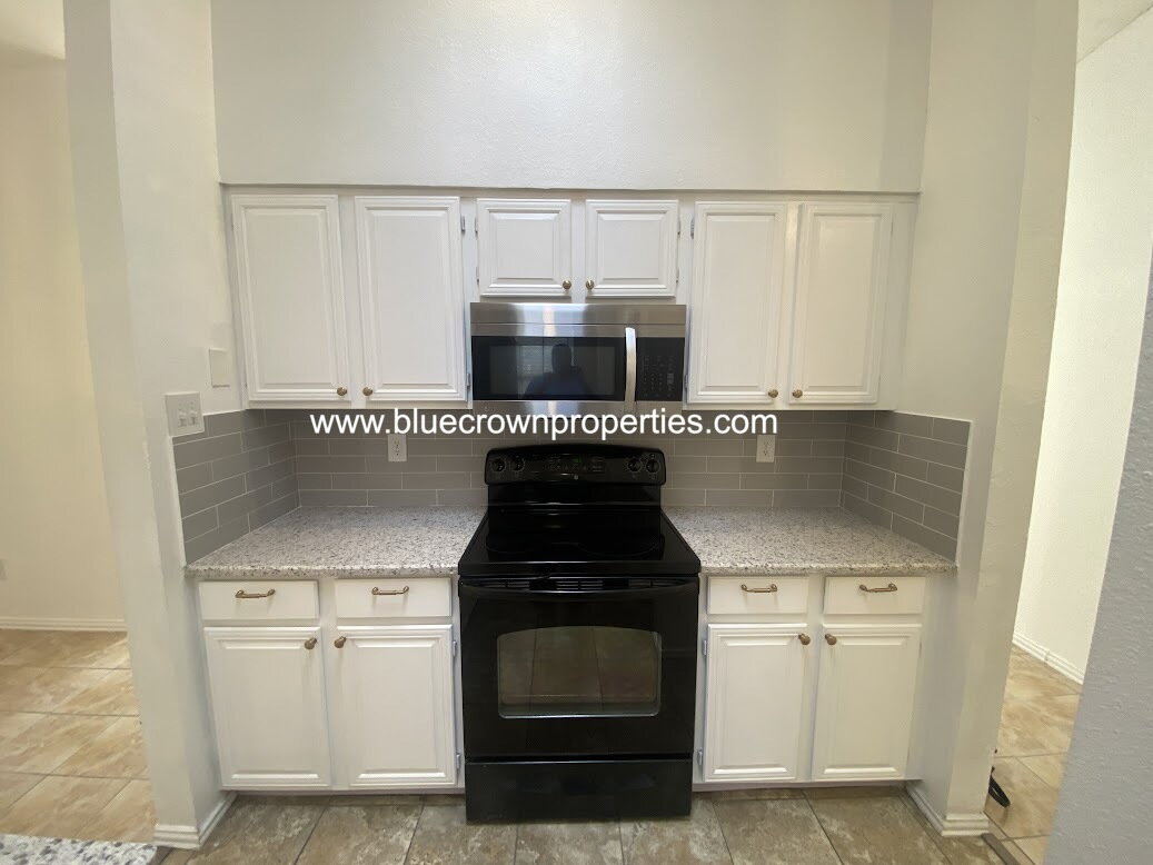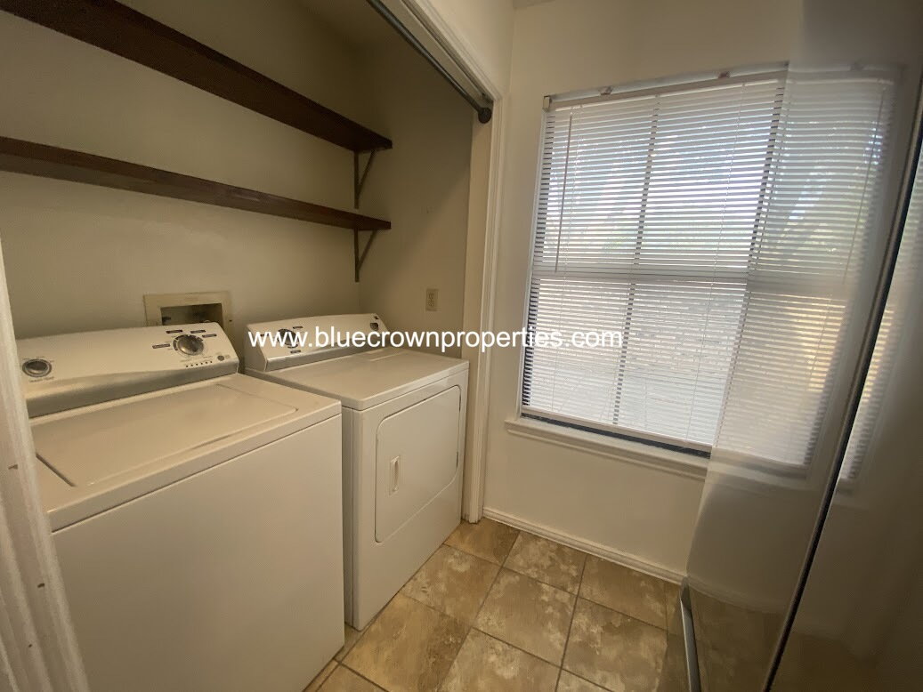 Adorable two bedroom, two bath townhome with additional office with barn doors in established and quiet Country Villas neighborhood. Kitchen feature quartz countertops, tile backsplash and ceramic tile floors, all appliances including washer and dryer. Other rooms have tile and vinyl wood flooring. French doors lead to the living room and master bedroom, skylights in the kitchen and bathroom provide lots of natural light. Fenced patio area with enough room for pets and great for entertaning enjoy the outdoors as well as a closed in front patio area. Prospect responsible for utilities, property information and schools. $195 lease admin fee.